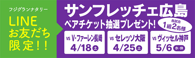 サンフレッチェ広島 観戦ペアチケットプレゼント