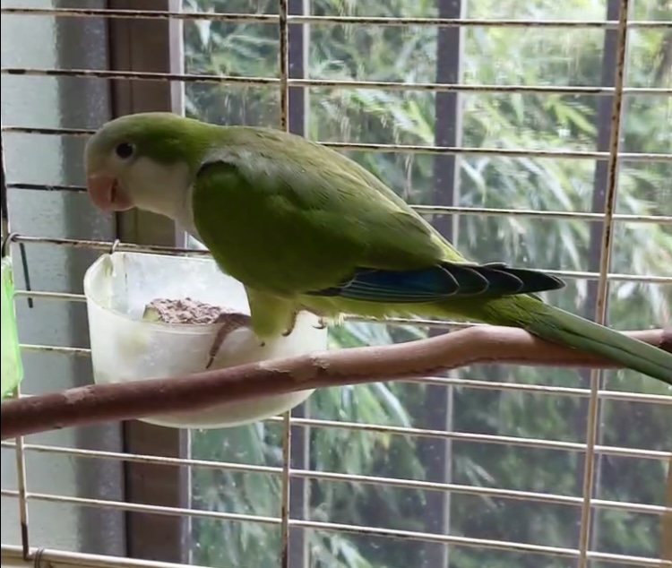 ウロコインコ(ノーマルグリーン)と一緒に入ってきたセキセイインコ(パステルカラー)寄り添い(笑)