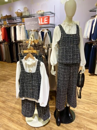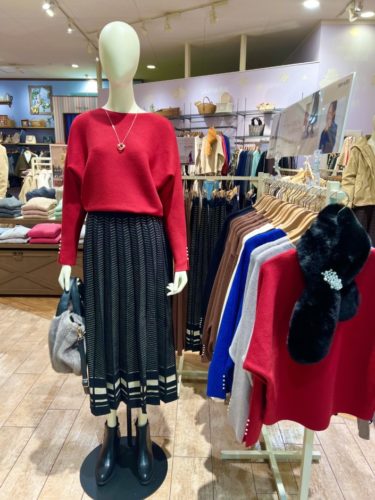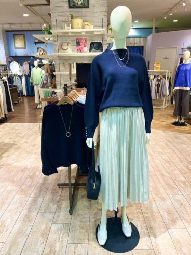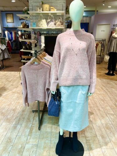 柔らかい色味のニットとスカートは合わせて着るとSET UPになります ~