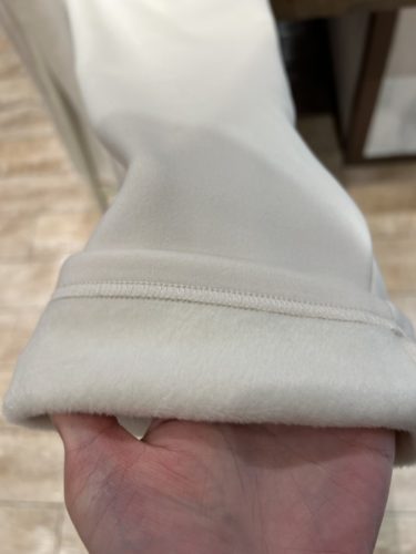 暖かく柔らかいトップスは丸首でお袖にはパールを施してます〜